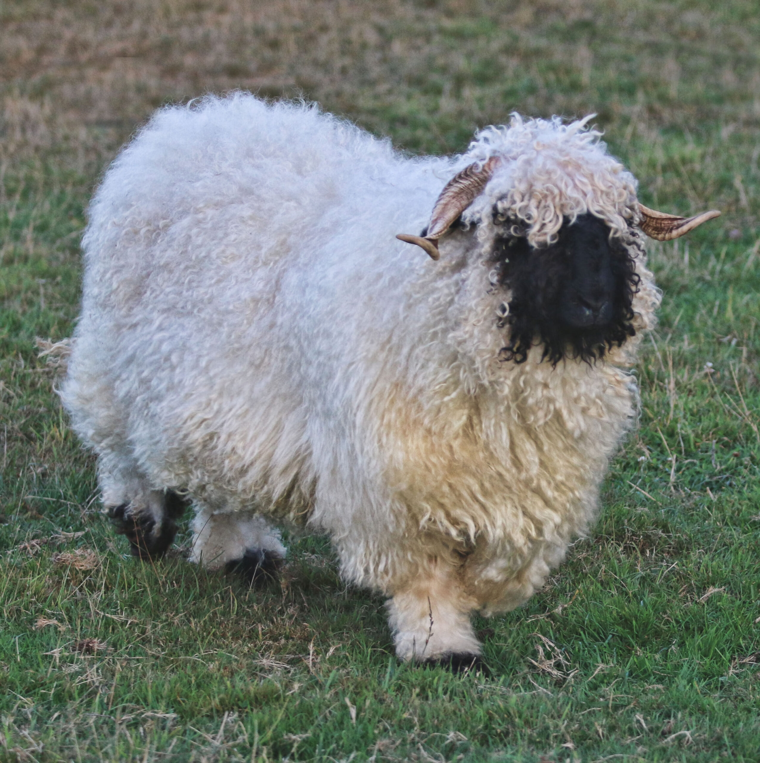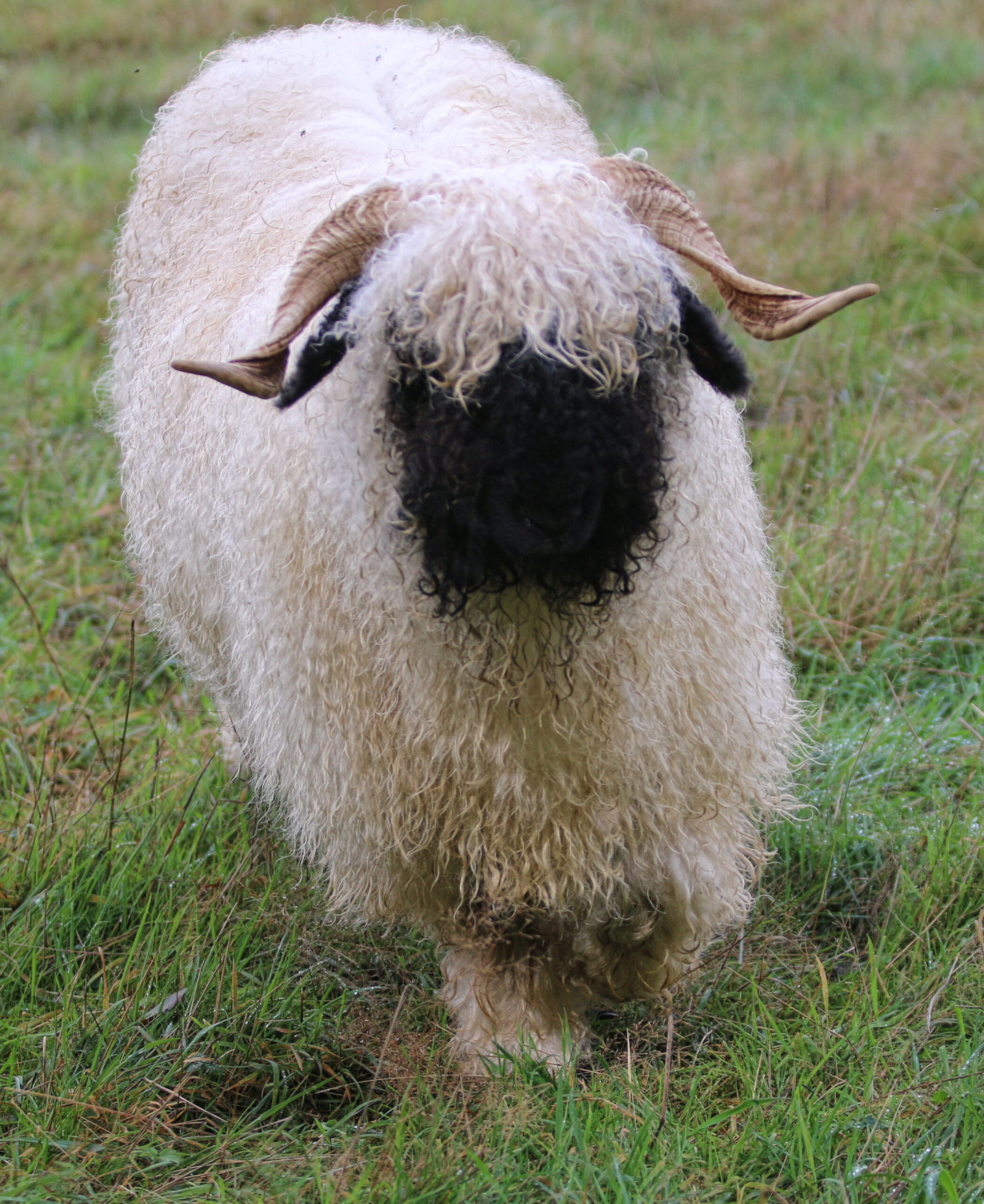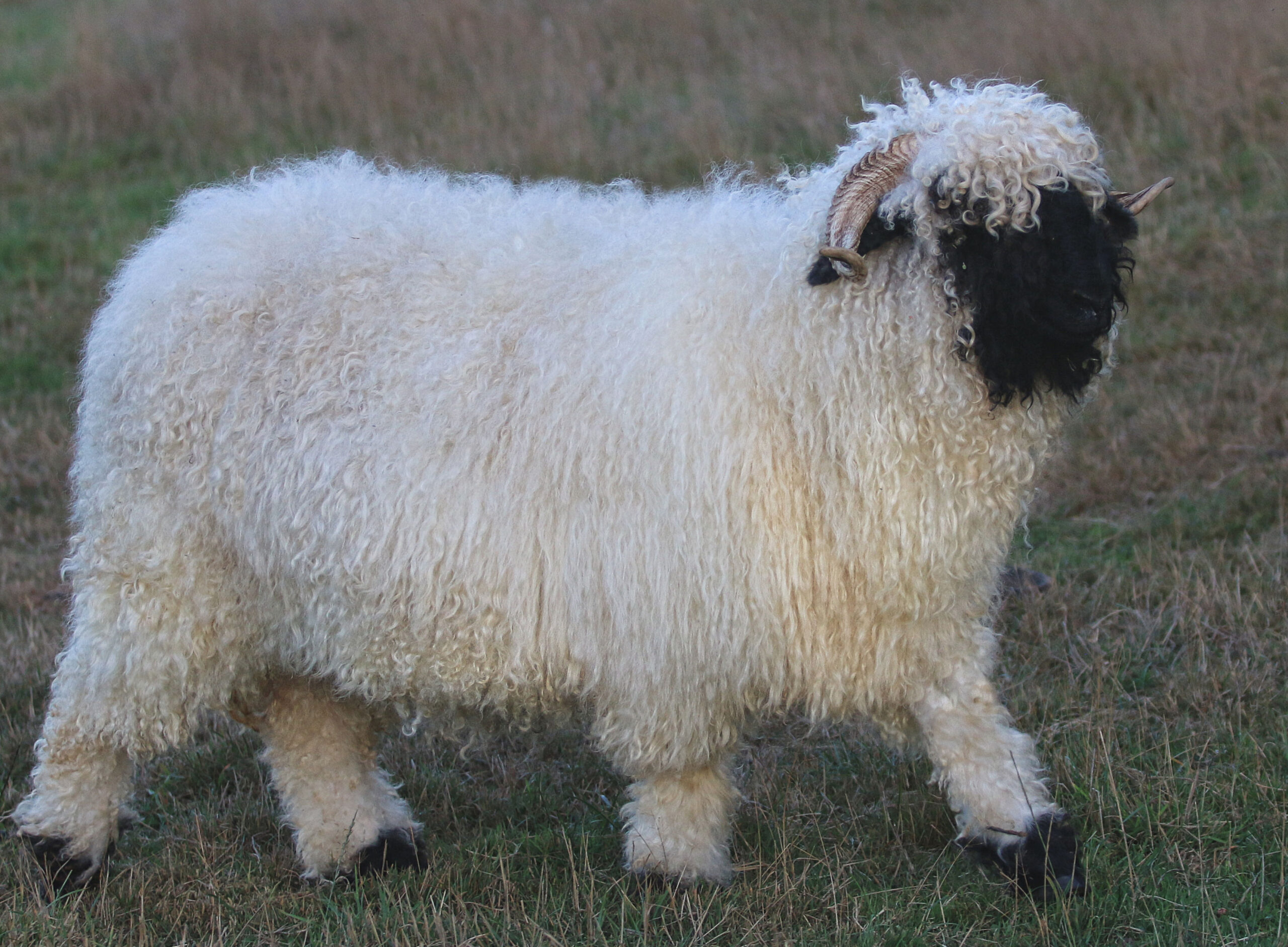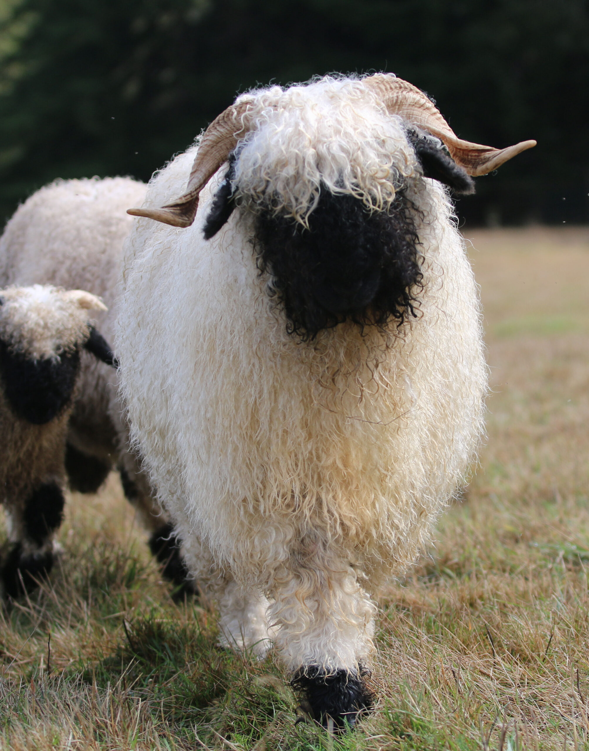 Regretfully offered for sale — Kiara is everything we hoped for – and more! This beautiful young ewe carries all the classic Valais charm with her silky-soft, high-luster wool, extensive fleece coverage, and perfect horns. Registered with VBSS, Kiara is an F5 (98% pure) and her 2026 lambs will be F6 (99%).