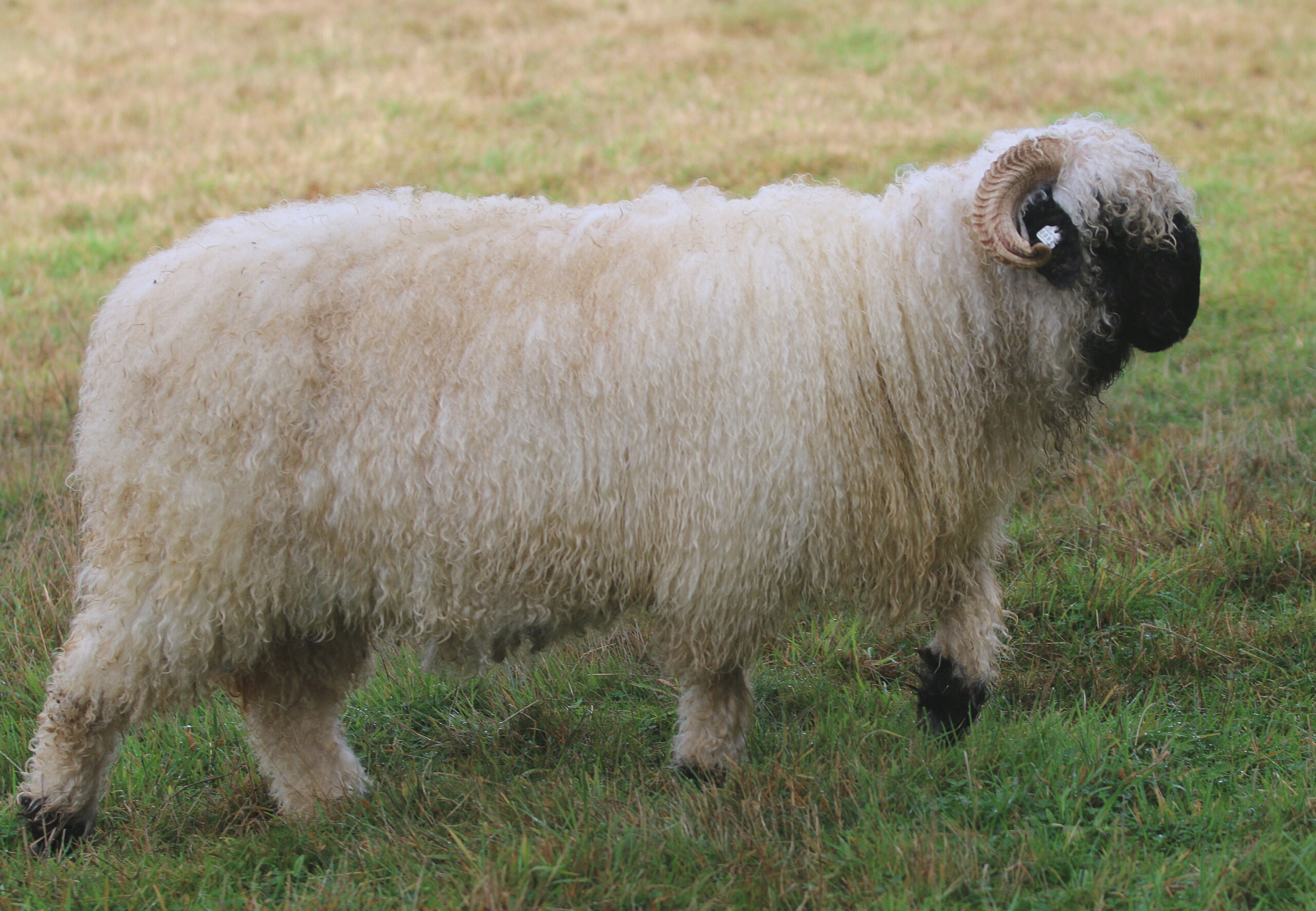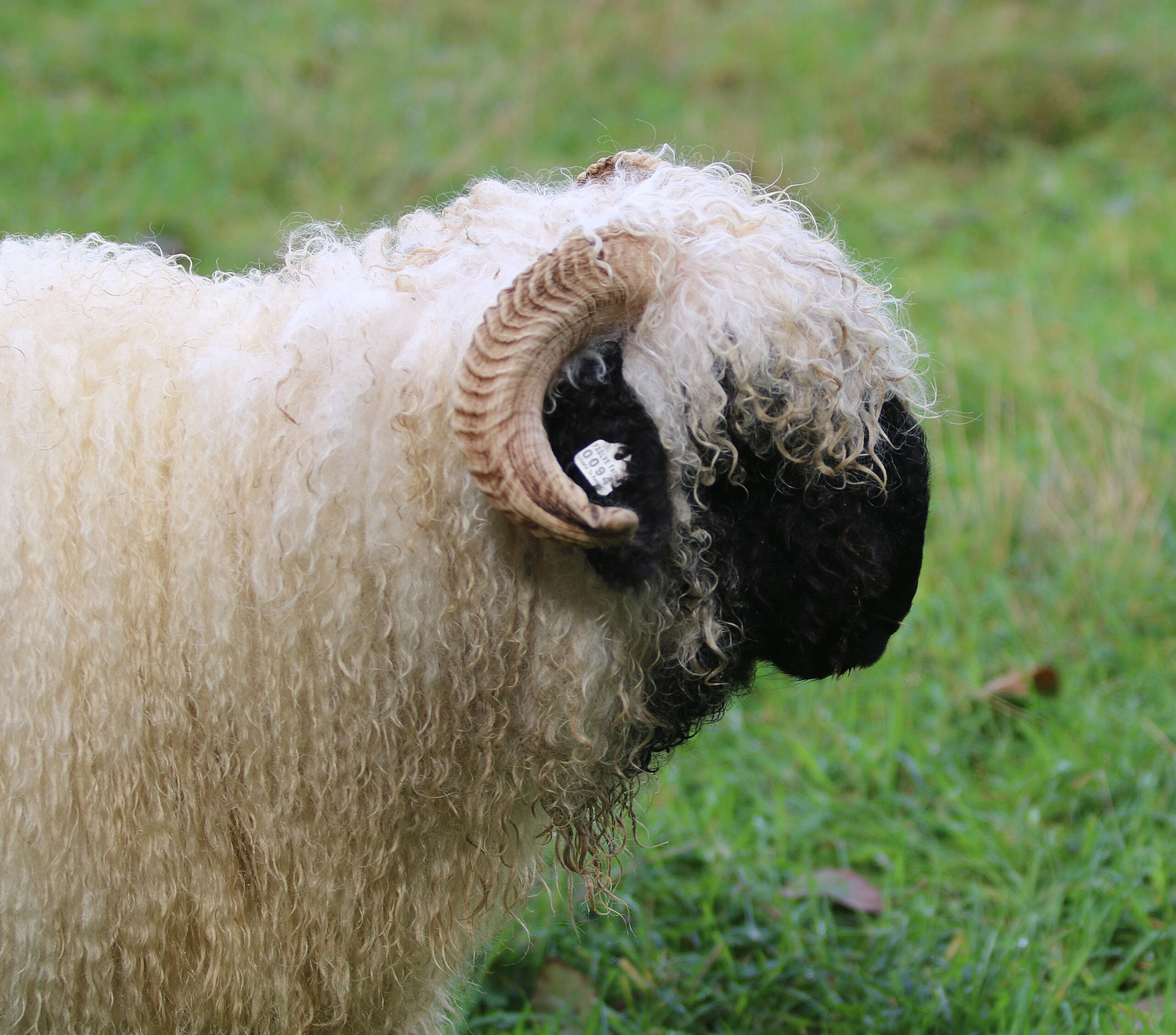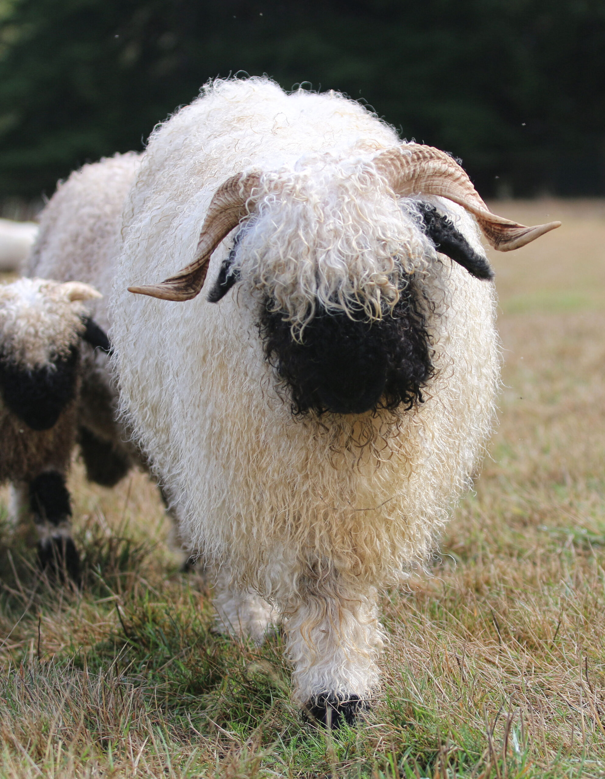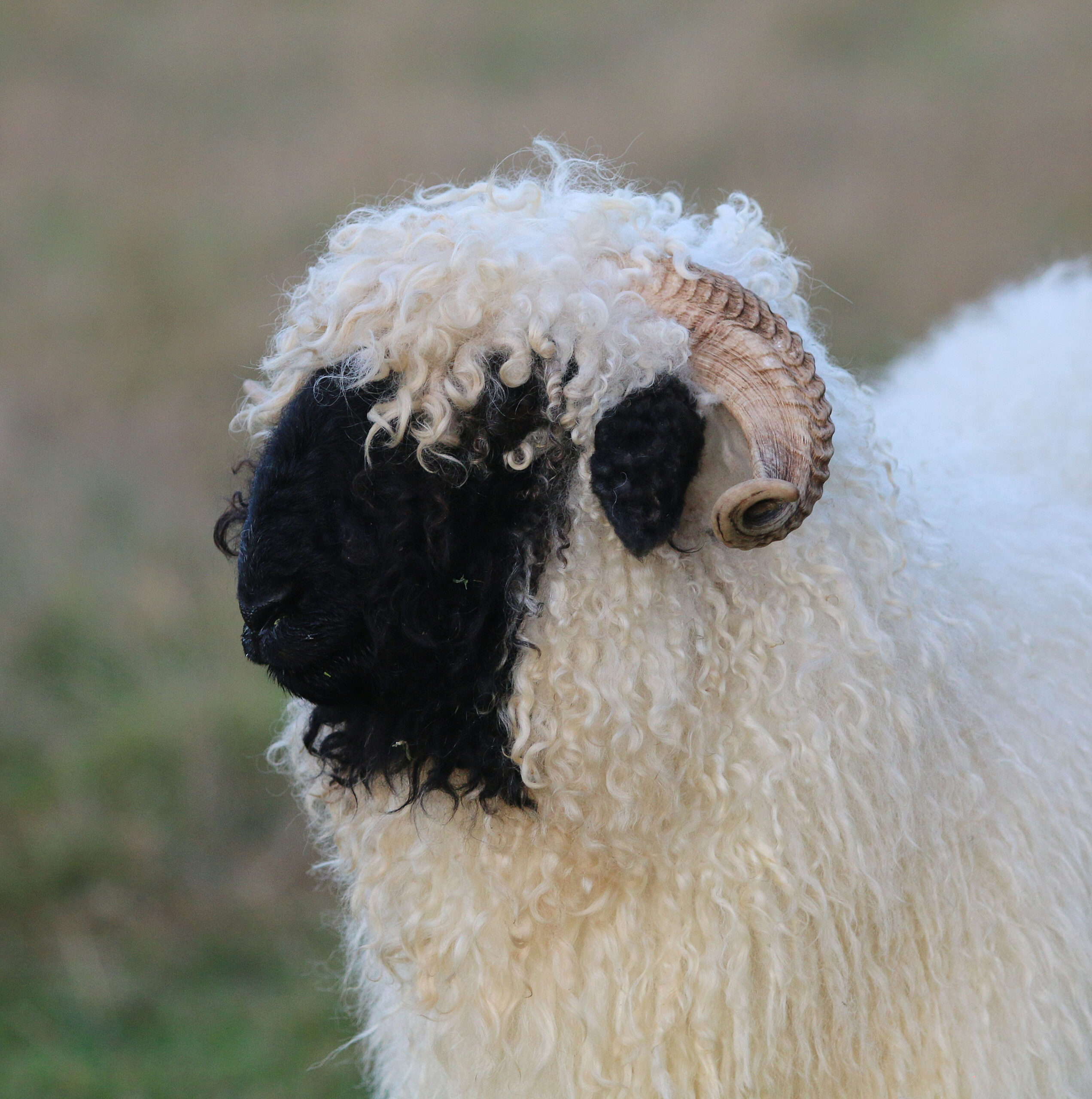 Regretfully offered for sale — Kiara is everything we hoped for – and more! This beautiful young ewe carries all the classic Valais charm with her silky-soft, high-luster wool, extensive fleece coverage, and perfect horns. Registered with VBSS, Kiara is an F5 (98% pure) and her 2026 lambs will be F6 (99%).